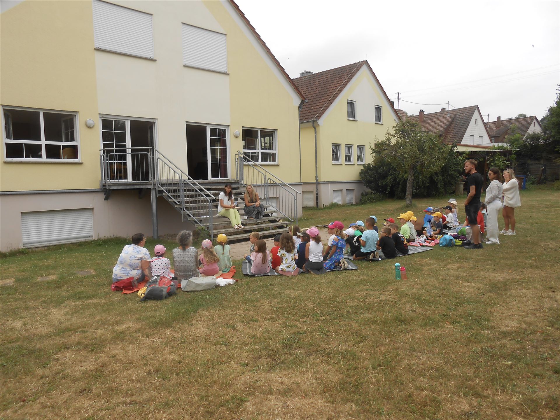 Am 3. Juli verwandelte sich der Garten des Gemeindezentrums Zaberfeld in einen lebendigen Treffpunkt für die diesjährigen Schulanfänger. Kinder aus der Evangelischen Kita Regenbogen Zaberfeld, dem Naturkindergarten Zaberfeld, der Evangelischen Kita Sonnenblumenland Michelbach, der Kita Ochsenburg und der Kita am Hutzberg Leonbronn kamen mit ihren Erzieherinnen zusammen, um sich gemeinsam auf den Einschulungsgottesdienst am 16. September in der evangelischen Kirche Zaberfeld einzustimmen.