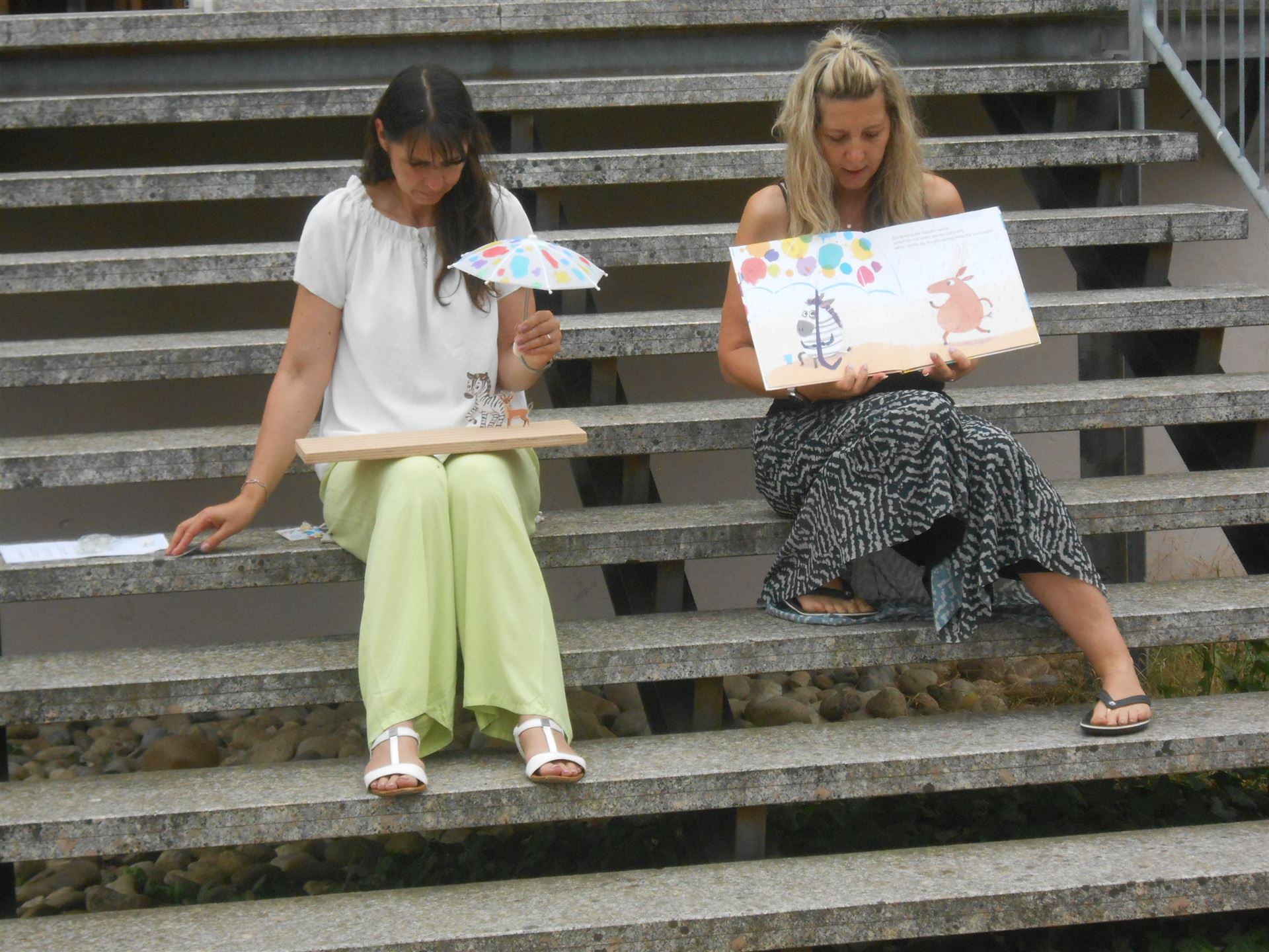 Nach einem fröhlichen Picknick begann die gemeinsame Einstimmung mit dem Bilderbuch „Das Zebra und der Regenschirm“ – eine Geschichte über Mut und Zusammenhalt. Anschließend durchliefen die Kinder in drei Gruppen kreative Stationen: Singen, Malen und Bewegung. Dabei wurde auch ein gemeinsames Kunstwerk gestaltet – was genau, wird erst im Gottesdienst verraten. Nur so viel sei gesagt: Ein bunter Regenschirm spielt eine wichtige Rolle.